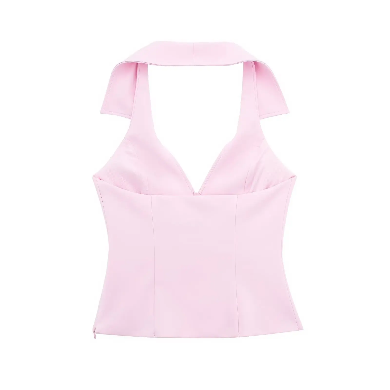 Custom Logo 2025 Women Sexy Pink Camis Top Shorts Set Summer Fashion Halter Neck Backless Top+Sweet Pink Short Pant Lady Suit
